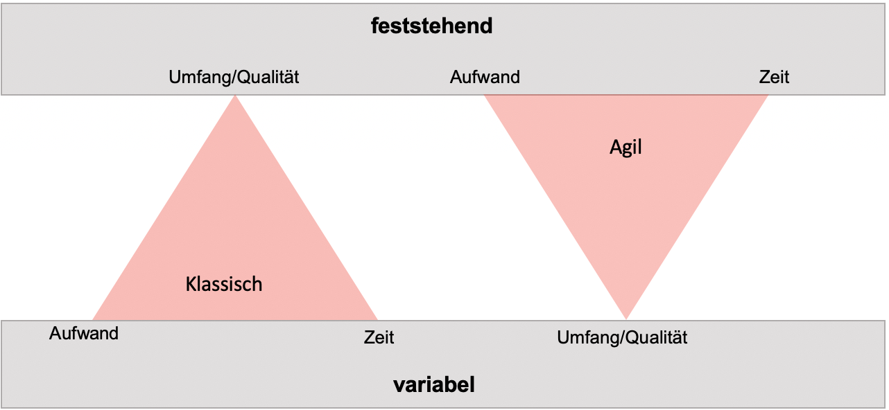 Ein Projekt, sei es die Produktion eines Fahrzeugs, der Bau einer Straße oder die Entwicklung einer Software, ist ein zielgerichtetes, zeitlich befristetes Vorhaben. Ein Projekt wird aufgrund seiner Komplexität, Variabilität der Kosten-, Ressourcen- und Zeitfaktoren sowie einer möglichst hohen Qualität in der Regel mit einem Projektmanagement gesondert behandelt [1]. Dabei dient das Projektmanagement in erster Distanz der Wahrung der Kundeninteressen und ist verantwortlich für die Einhaltung der vom Kunden vorgegebenen Faktoren Zeit, Kosten und Qualität [2]. Hierbei wird insbesondere in der Softwareentwicklung zwischen zwei verschiedenen Ansätzen des Projektmanagements unterschieden. An Anfang eines jeden Projektes steht die Wahl der Methode.