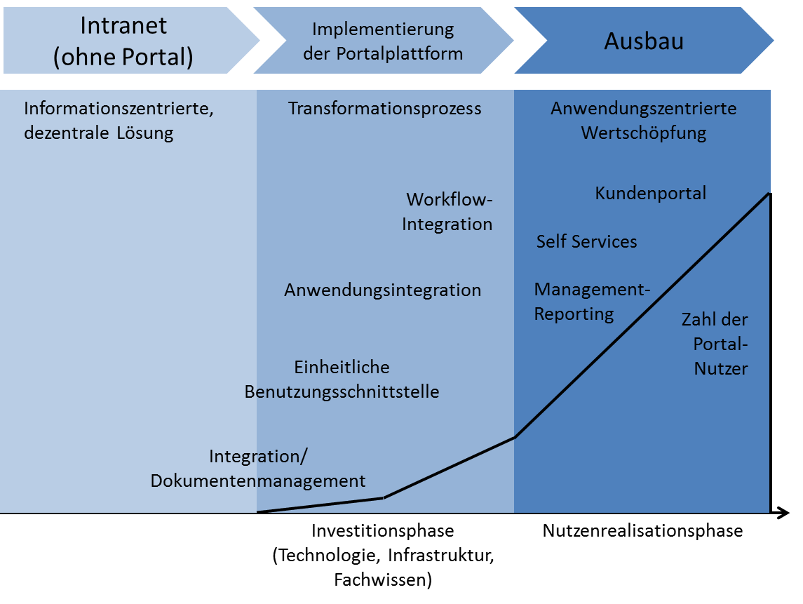 - Betriebswirtschaftliche Sicht: Ein Intranet Portal dient als ein Produktionsfaktor, mit welchem Arbeitsprozesse beschleunigt und verändert werden können.