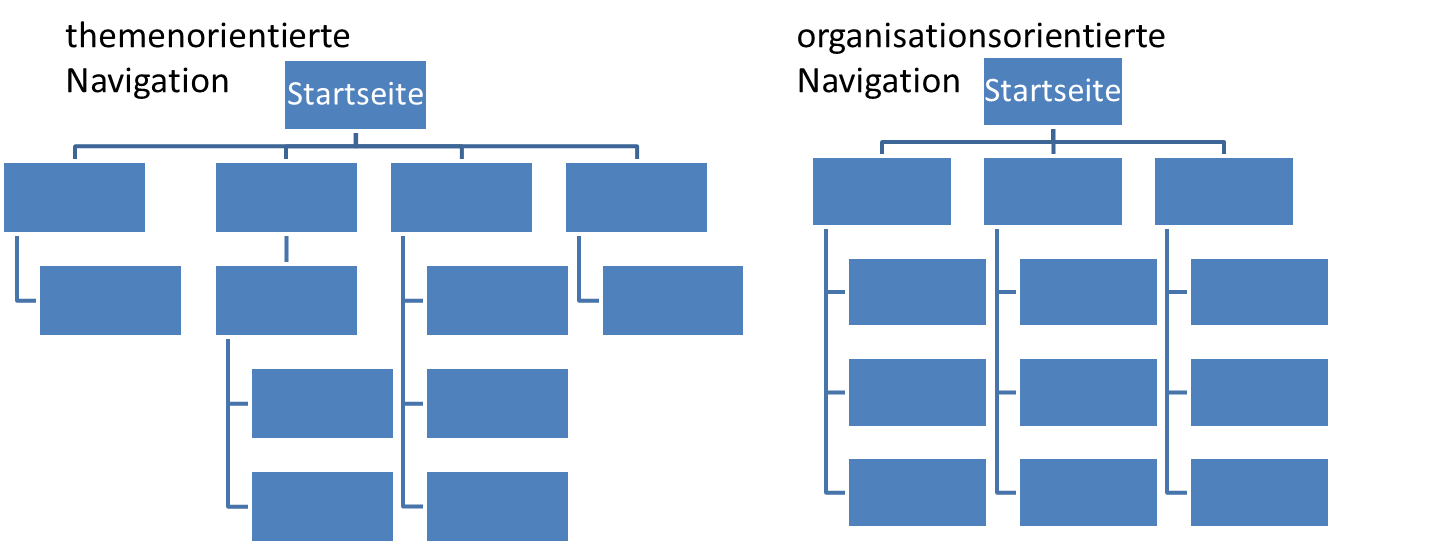 Abbildung: themenorientierte und organisationsorientierte Navigation