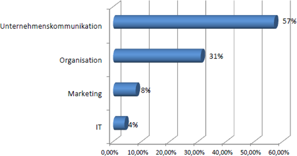 Der Wunsch für eine Portaleinführung geht nicht wie bei herkömmlichen Informationssystemen wie das ERP-System von den IT-Verantwortlichen oder Vertriebsleitern hervor. Heute ist das die Abteilung der Unternehmenskommunikation, welche dieses Projekt vorantreibt und sich aktiv für eine Einführung einsetzt. Eine durchgeführte Studie der add-all AG zeigt deutlich, dass das Intranet-Team in der Unternehmenskommunikation angesiedelt ist. Hierzu wurden 279 Unternehmen in dem Zeitraum von Dezember 2012 bis Januar 2013 befragt.