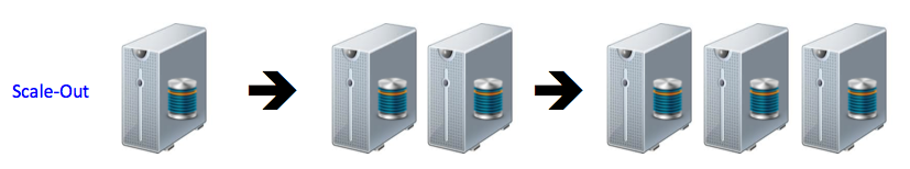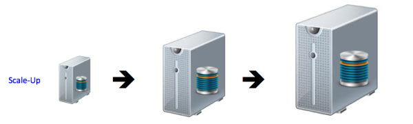Wenn ein System aus der Infrastruktur herauswächst, in der es ursprünglich installiert wurde, gibt es die Möglichkeit, durch Skalierung dem wachsenden Datenvolumen und Ansprüchen zu begegnen. Hierbei unterscheidet man zwischen vertikaler Skalierung (scale up) und horizontaler Skalierung (scale out oder Sharding). Das bedeutet eine Steigerung von Kapazität und Leistung entweder durch das Hinzufügen schnellerer Komponenten (meist CPU oder Speicher) in eine bestehende Servereinheit (scale up) oder die Vergrößerung eines Server-Clusters durch das Hinzufügen zusätzlicher Knoten (scale out).